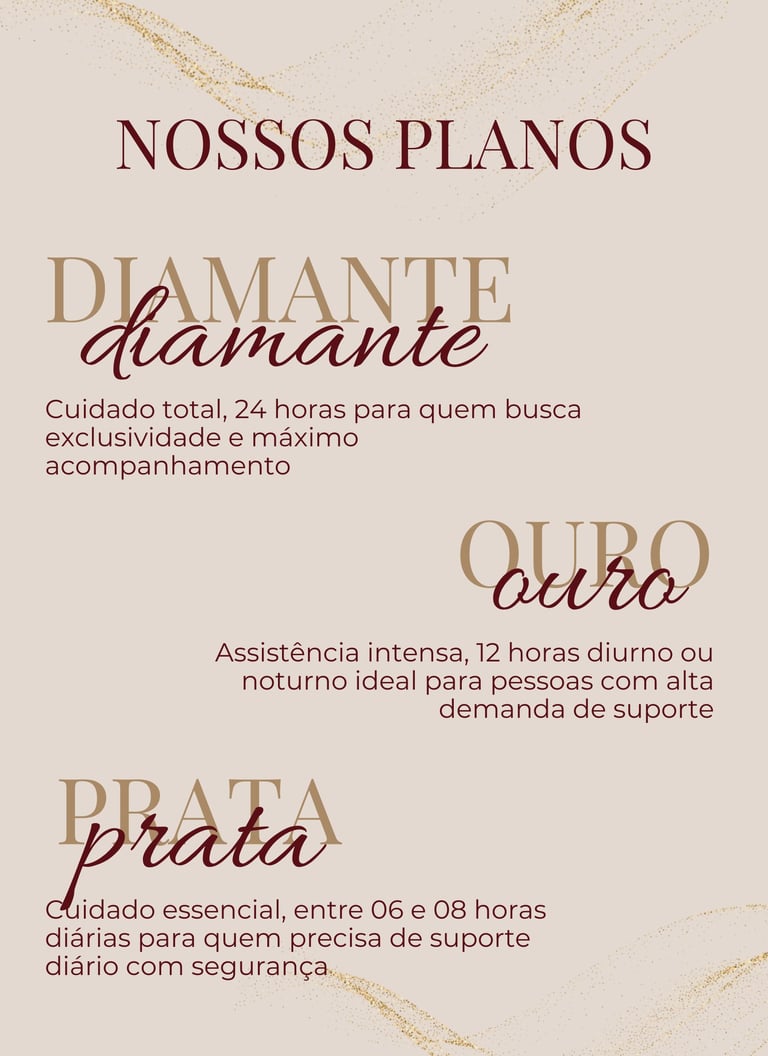 Oferecemos flexibilidade com planos diurnos, noturnos, de plantão ou pós-operatórios, adaptados às suas necessidades.